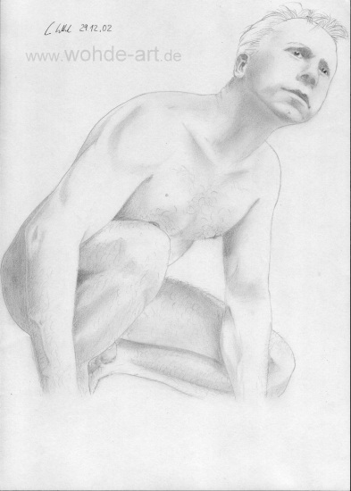 2002, diese Zeichnung auf A4 untergebracht, gehört der “Neuzeit” an. Es sollte ein vorsichtiges Experiment sein, ein weiteres realistisches Bild (“die Schwedin” war das Erste) nach Fotovorlage zu erstellen. Über das Ergebnis war ich sehr erstaunt und zufrieden.