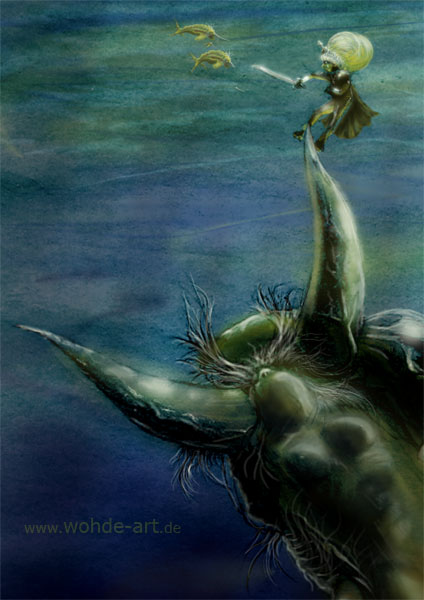 A4 Bleistiftzeichnung, digital fotografiert und am PC coloriert.